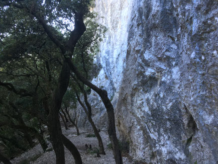 Il est des coins de Provence où il fait bon être.Nous grimperons sous le chant mélodieux des oiseaux, le murmure de l'eau de l'Aiguesbrun, et parfois le passage de quelques randonneurs sur le chemin de Sivergues. Que demander de mieux en ce bas monde qu'une journée paisible au soleil et ombragée au sol. La chaleur est encore acceptable sur le rocher toujours aussi impressionnant, des plats, des assiettes, des petites sections qu'il faut enjamber ... du sport. Belles longueurs à bras!
